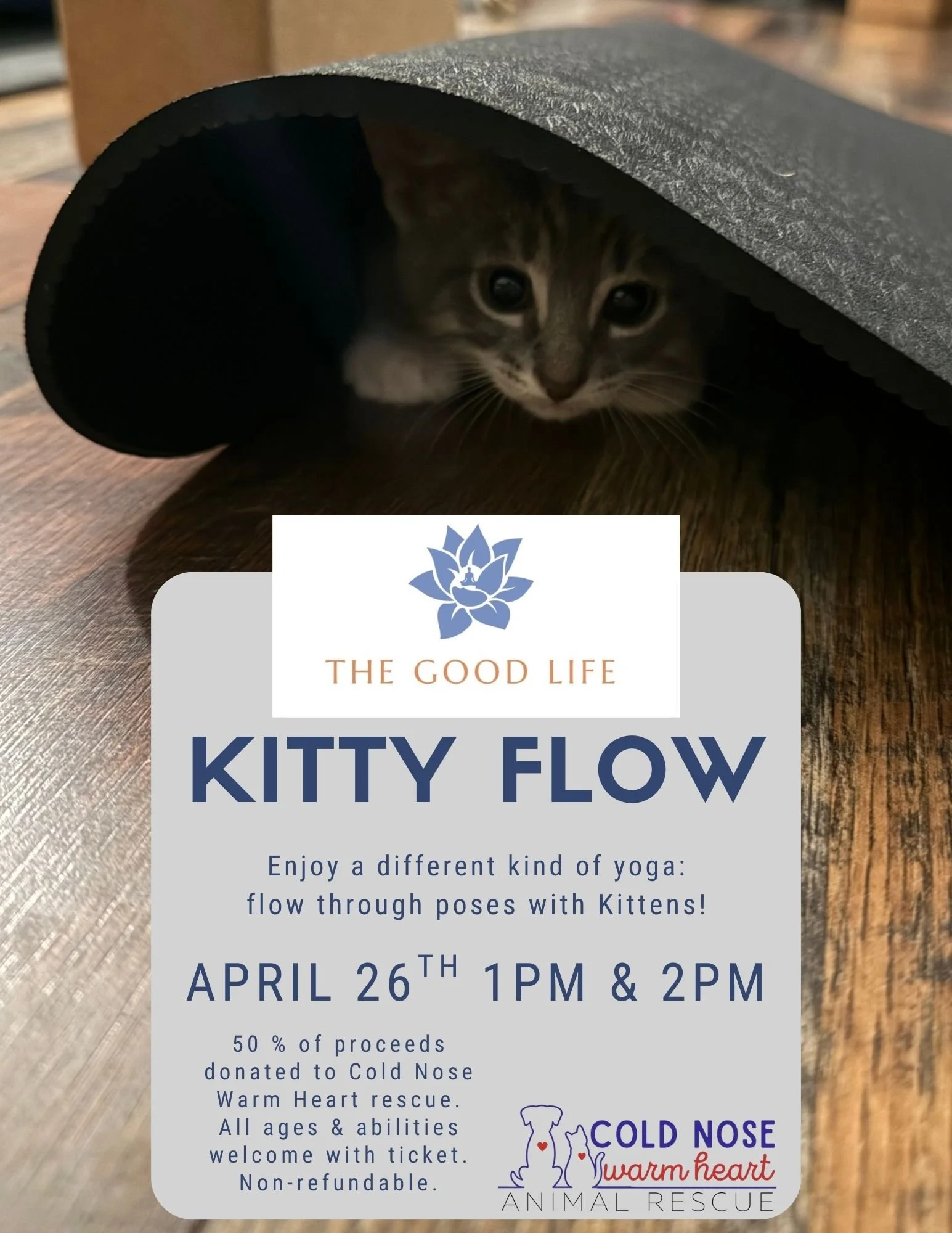 Even better? Half of all proceeds go to The Cold Nose Warm Heart Rescue, helping them continue their amazing work saving animals in need. ❤️🐱 Space is limited- Tickets are non-refundable.