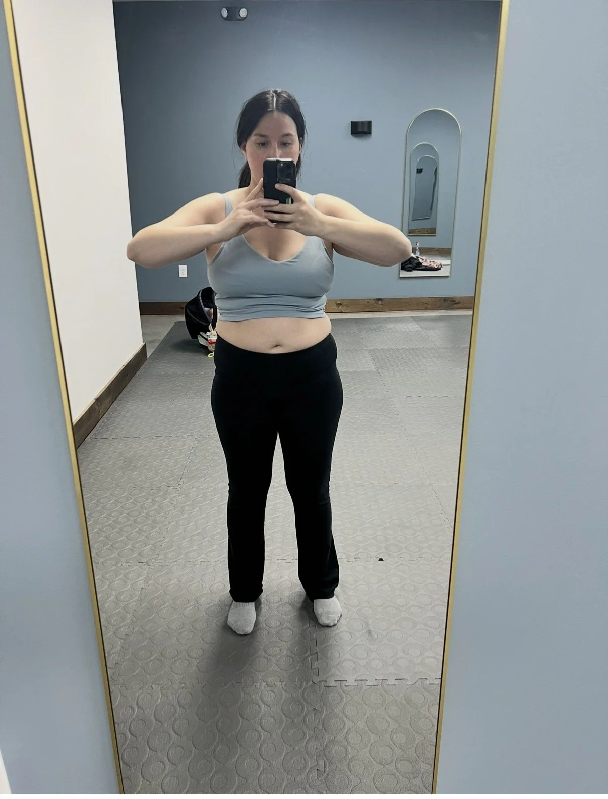Peep the infant seat in the background (3 months postpartum)